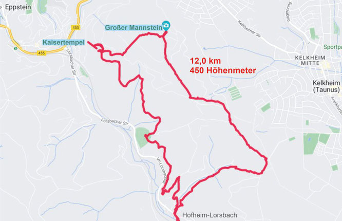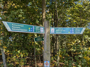 An einem sonnigen Herbsttag mit Temperaturen über 20 Grad bin ich eine kleine Taunusrunde von 12 km gewandert. Von Hofheim-Lorsbach geht es auf die Höhe, vorbei am Restaurant Gundelhardt. Der weitere Weg führt auf dem Schinderhannes Steig stetig aufwärts auf 411 m zum Aussichtspunkt 'Großer Mannstein'. Hier hat man tolle Aussicht auf die Skyline von Frankfurt und auf den Taunus. Das nächste Ziel ist der Kaisertempel. Er steht auf einem Felsvorsprung am Westhang des Berges Staufen im Taunus oberhalb der Stadt Eppstein. Das klassizistische Baudenkmal hat die Form einer Vorhalle (Pronaos) eines griechischen Tempels.