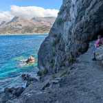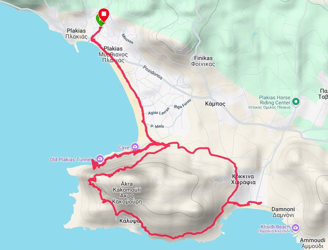 Die Wanderung am Kap Kako Mouri ist vielseitig: Sie führt durch einen Olivenhain, erkundet Klippen, bietet tolle Ausblicke auf das Meer und etwas Kraxelei. Am Ende eines Klippenpfades steht ich man zwei Tunneln mit Überresten eines kleinen Hafens dahinter. Für die Querung und Erkundung empfiehlt es sich eine Taschenlampe mitzubringen. Entlang der felsigen Küste kommt man durch die Hotelanlage 'Kalypso Cretan Village Resort' und erreicht nach einiger Zeit den Küstenort Damnoni. Hier gibt es einige Tavernas, die ausreichend feste und flüssige Nahrung zur Stärkung anbieten. Zurück geht es durch Olivenhaine nach Plakias.