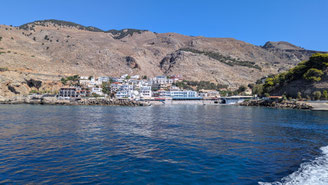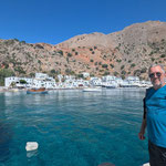 Mit der Fähre von Chora Sfakion in das autofreie und nur mit dem Boot oder zu Fuß erreichbare Loutro. Das ehemalige Fischerdorf am Libyschen Meer ist schon lange kein Geheimtip mehr. In den 60er Jahren wurde es touristisch erschlossen. Wir sind vom Bootsanleger durchgelaufen Richtung Wanderweg nach Chora Sfakion.